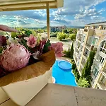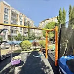 Apartmán Messembria Palace - Menada Apartments se nachází 2 km od Sluneční pobřeží a 7 km od Dinevi přístav. Nacházejí se zde Sirena & Delfin a Restaurant Sirena & Delfin, kde se podávají pokrmy evropské kuchyně, které najdete 20 minut chůze od ubytování.